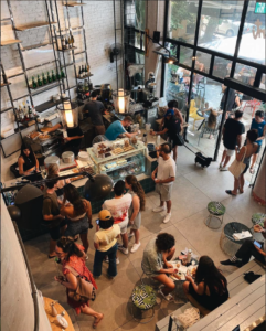 Nomena is tucked inside a stunning Bauhaus-style building with a prime location in Lev Ha’Ir. With an outdoor patio and ample indoor seating, this cafe is an ideal spot for becoming a regular. The baristas are friendly, knowledgeable locals who often remember names and orders, adding to the sense of community. Nomena offers great vibes and a calm, peaceful atmosphere in an elegant, thoughtfully designed space. They also specialize in high-quality coffee, roasting their own beans several times each week.