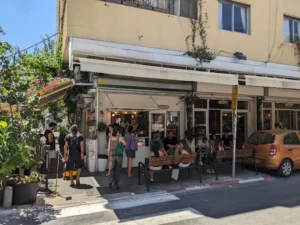 Perhaps the city’s most famous cafe, Nabi Yuna is truly iconic. Located on Allenby Street, Nabi Yuna’s shabby-chic couches are synonymous with the laid-back cool that epitomizes Tel Aviv. Open on Shabbat and even during times of war, Nabi Yuna features an extensive menu of food, coffee, beer, wine, and cocktails.